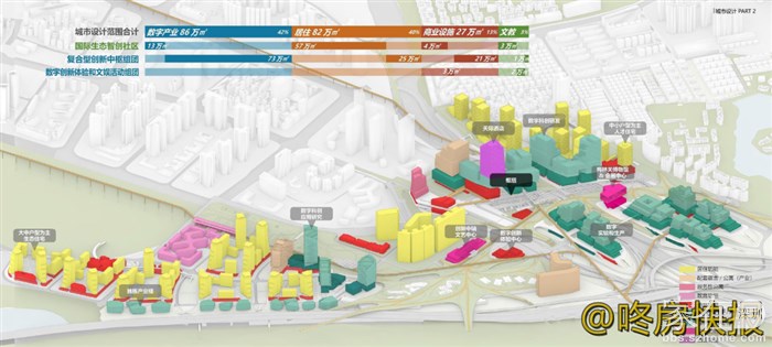 按照设计方案,这片1.1平方公里的土地将斥资近700亿改造升级成为国际的“轨道上盖之城”,其中包含约86万m²的数字产业园、约82万m²居住、约27万m²商业设施以及约6万m²的文教设施。