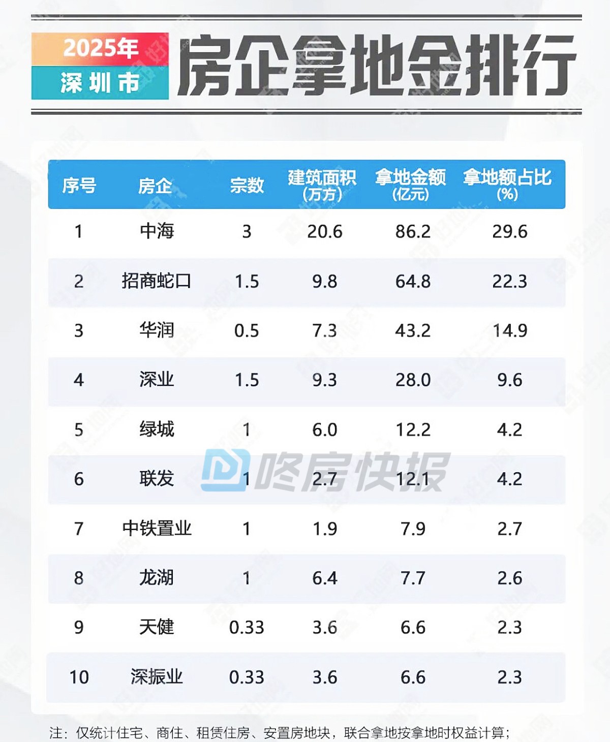 今天看到2025年深圳房企拍地排行
