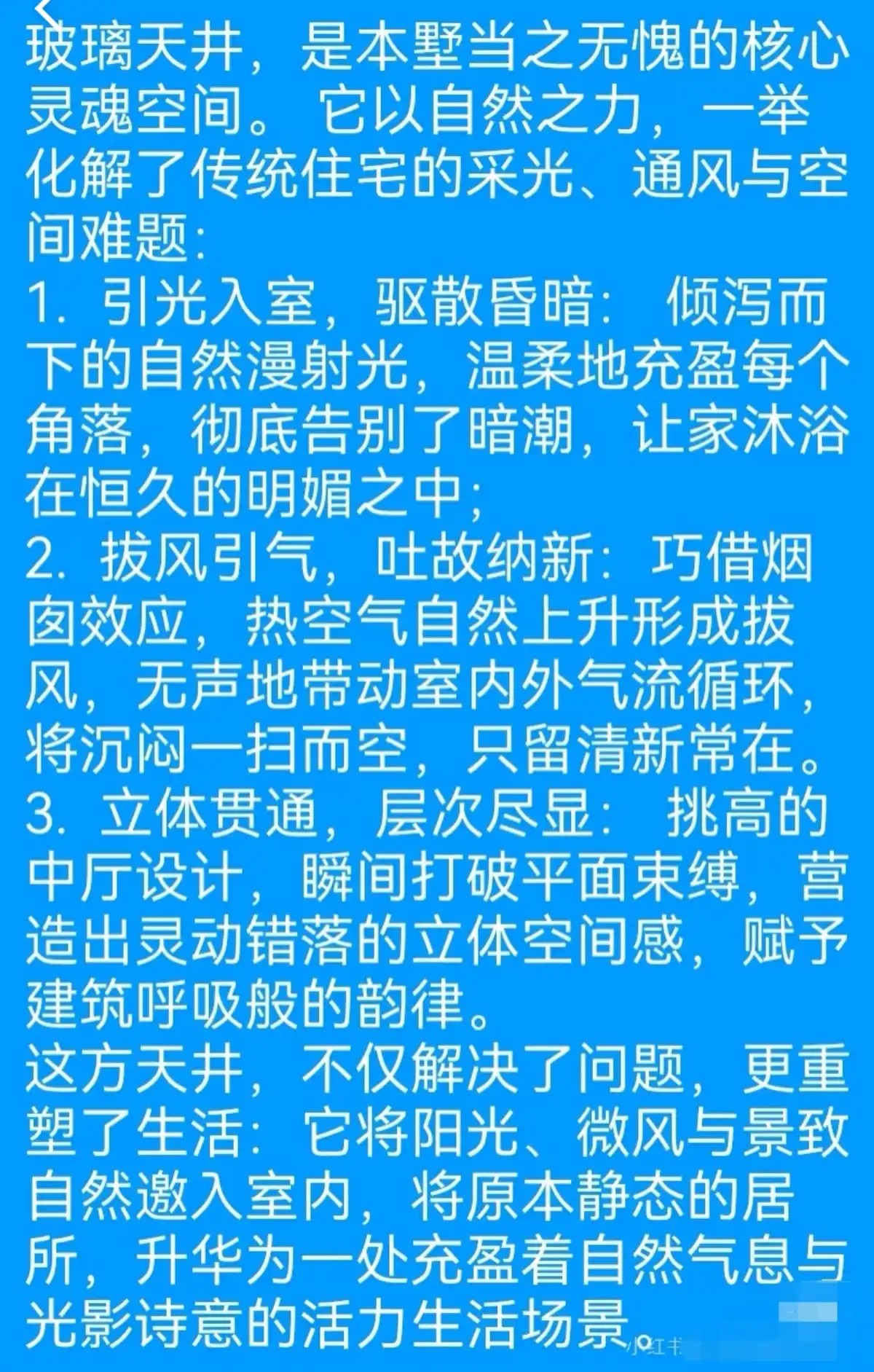 第5张图明确“玻璃天井是别墅核心灵魂空间”,其设计围绕三大自然优势展开,直击传统住宅痛点: