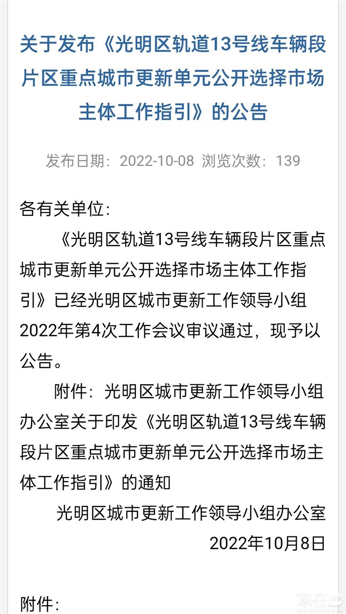 引用吃瓜喽的发言:关于发布《光明区轨道13号线车辆段片区重点城市更新单元公开选择市场主体工作指引》的公告