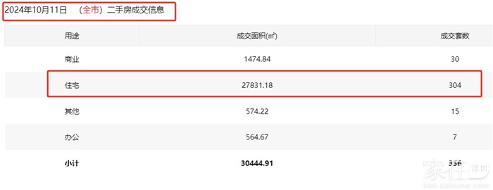 2024年10月11日   (全市)二手房成交信息,住宅成交304套