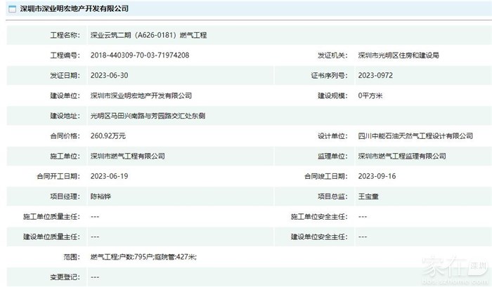 深业云筑二期在装燃气