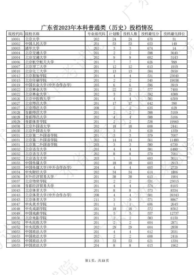 1.普通类(历史)投档情况2.普通类(物理)投档情况