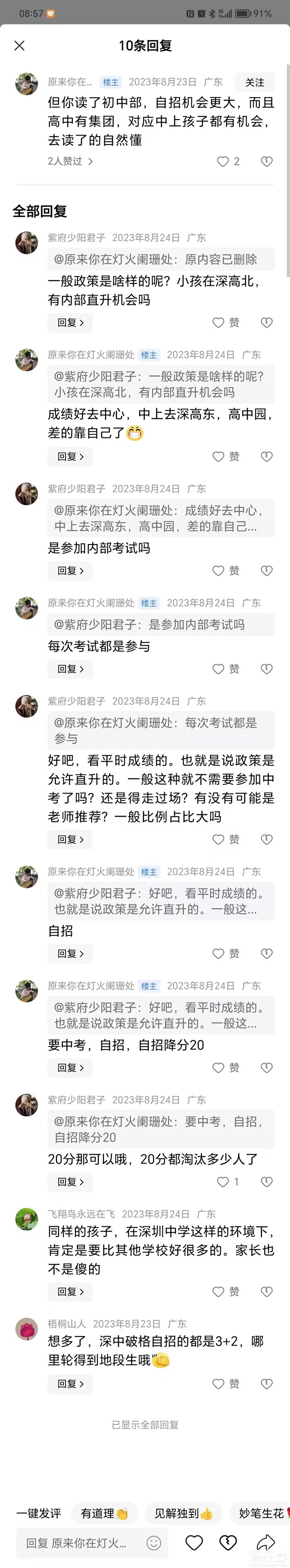 引用151楼LLKKAA的发言:你不知道有小区是平安里+深中龙初双学区吗?外加一个龙高初、小部。引用150楼alexhy的发言:你是平安里学区的,怎么去的深中龙初?引用LLKKAA的发言:拿着头条评论党证据还行?真是无语。我儿子小学平安里、成绩中游。中学读深中龙初,那节初一开学后有一次分班考试。成绩好的会集中一些,我们那个班应该属于排名靠后,我是属于那种比较佛系,主要看孩子自己。但是深中学习氛围确实是个比较好。我儿子小学玩伴在平安里读初中,差距明显,我们班主任会针对每个孩子弱项联合家长进行突击,过程确实艰苦,但班里孩子都在一个非常好的学习气氛中,即使我佛系,我儿子自己都非常拼。最终指标生录取到了龙高。他们班里一共4个四大,6个8大,考上公办高中接近90%,没考上那几个,有两个本地村名孩子,家里房产无数,还有两个直接走国际路线,剩下也读了私立高中。