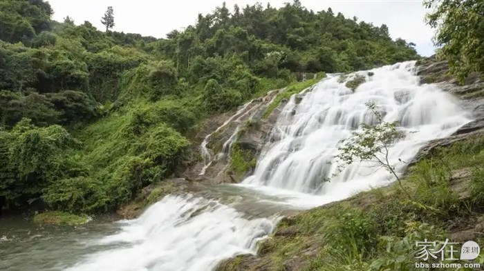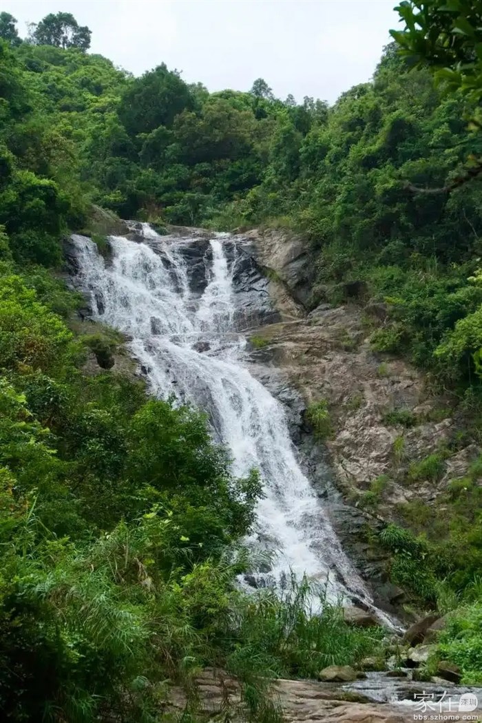 碧岭瀑布的一大特色——叠瀑分布着深圳最密集水流最大、形态最丰富的瀑布群落差最大的瀑布高达15米溪谷入口处的两级瀑布因为山谷开阔,瀑布的斜坡较宽水像帷幔一样,盖在岩石的面上