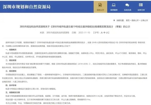 再添地铁新线!19号线规划公示,坪山er期待值拉满
