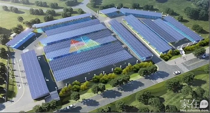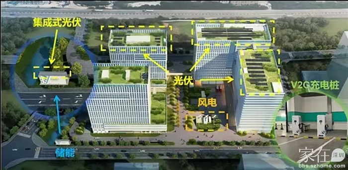 沿着坪盐通道从深圳中心城区进入坪山,只有半个多小时的车程。如果不特别留意,街道旁边小小的储能箱几乎很难看到,但它已经悄然进入这座城市的生活。而从空中用无人机望去,太阳能光伏电池板在各大产业园楼反射着阳光。甚至,正在建设的坪山区政府一办,由于是风光储充放示范项目,看上去更像是太空基地。