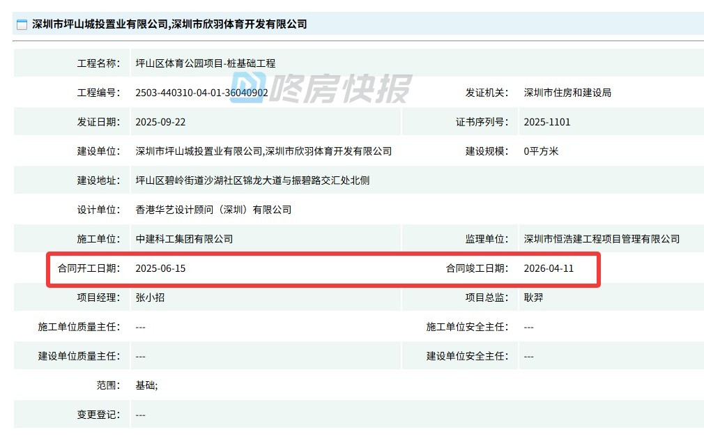 建设单位: 深圳市坪山城投置业有限公司,深圳市欣羽体育开发有限公司