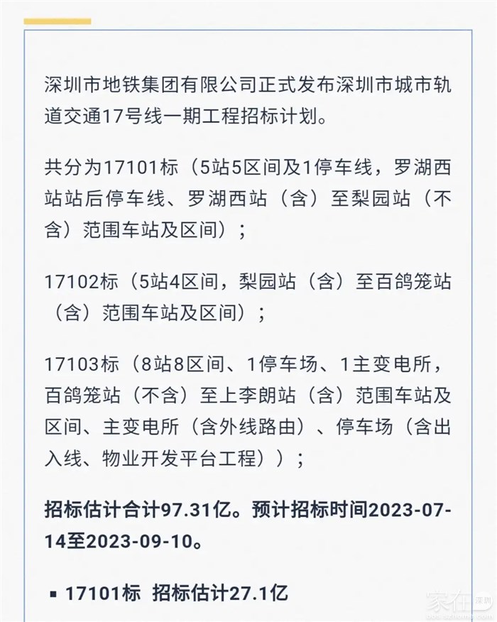17号线目前的计划是7月到9月进行施工总承包招标,也就是说最快7月,最慢9月可以动工