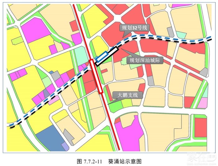 通过龙大城际的环评资料,目前已知32号线从溪涌、上洞过来后直达葵涌中心(不在土洋设站),在葵涌中心和龙大城际、深汕城际形成三线换乘的小枢纽。过葵涌中心后,32号线继续往东去往坝光国际生物谷(可能在葵涌东部再设一站),不再往原规划的新大延伸。