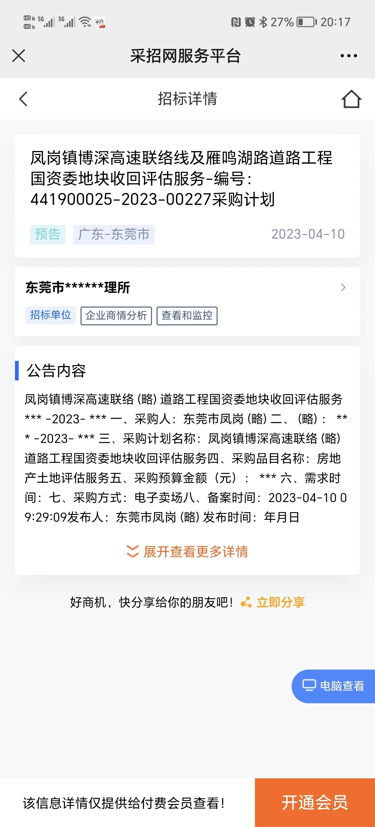 凤岗镇博深高速联络线及雁鸣湖道路工程