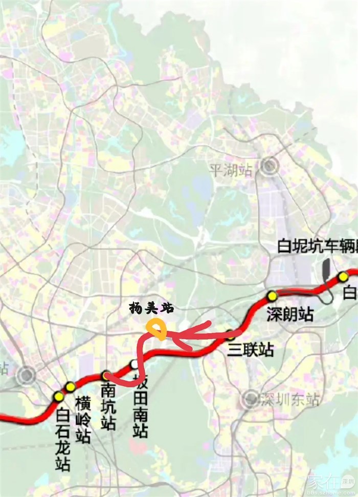 比如,经过三联后,到杨美来,然后再前往坂田南站。或者在上水径站直接相交,设置换乘站。