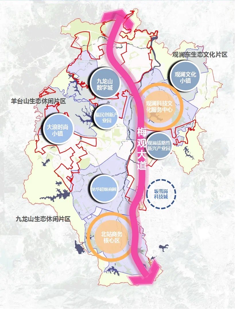 感觉坂田最应该划入龙华,然后重点搞好梅观创新走廊,梅观大道将又是一条南北走向的深南大道。