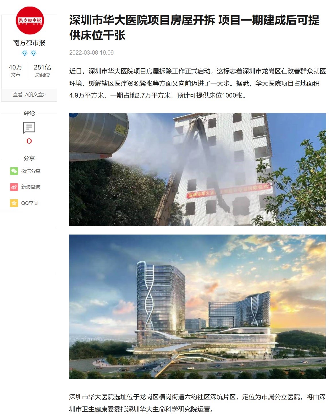 2022年3月的新闻,无意中发现====深圳市华大医院项目房屋开拆