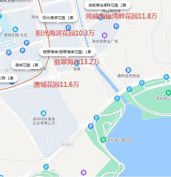 周边指导价:澳城花园11.6万,翡翠海岸13.2万,阳光海滨花园10.3万,鸿威海怡湾畔花园11.8万