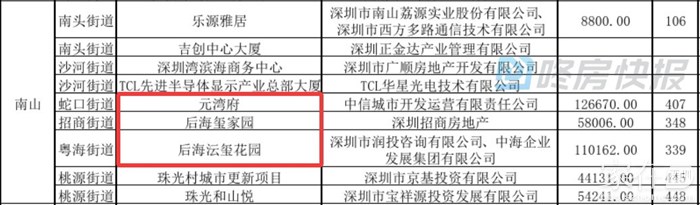 南山放出9个项目,共2093套新房