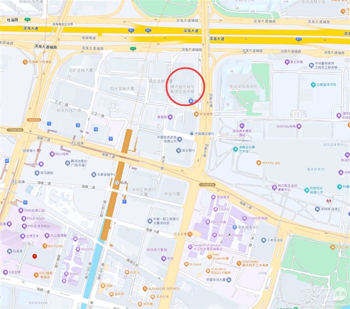 腾讯音乐总部大楼位于南山区粤海街道后海中心区滨海大道与创新大道交汇处
