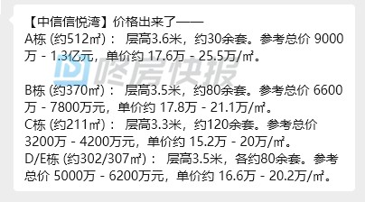 中信信悦湾价格出来了——单价约 15..2万 - 25.5万/㎡