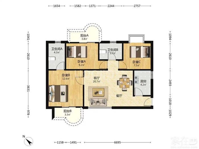 白石洲性价比非常好高三房