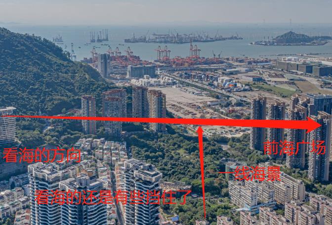 景观的样子,海景会被挡住,中间在建汉京花园,有估计也是一(条)线海景