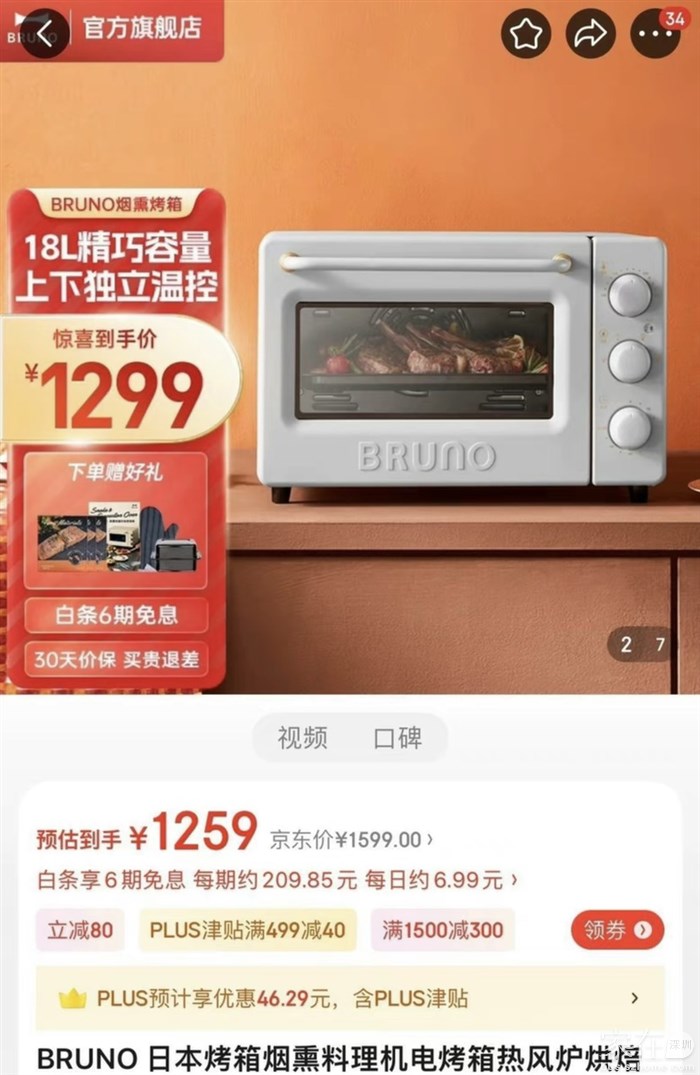 公司礼品,型号为BZK-KX03,全新未使用,京东原价约1000左右。烤箱重量约6.85 kg,尺寸:51*43.8*34.3 cm。