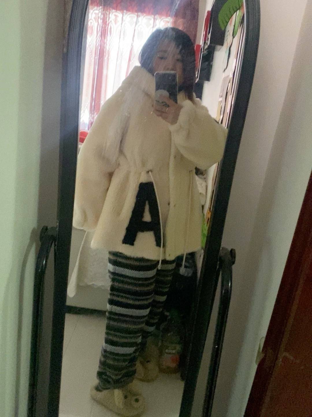全新纯羊羔毛外套米色,均码,可以穿到120斤左右。