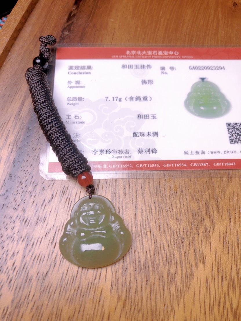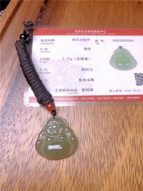 引用121楼楼主的发言:之前孩子满月时候别人送的礼物,天然和田玉油料佛公吊坠,大肚能容天下事,非常不错的一款,带证书,送人合适。用不到转出。💰399
