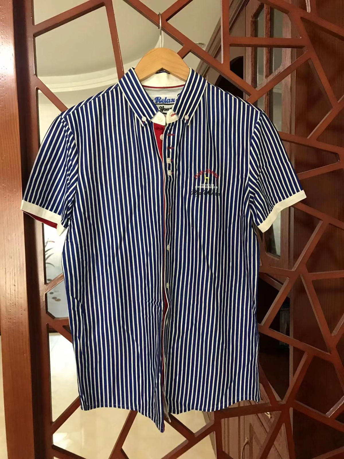 31.蓝色条纹  材质舒服不沾身   170 应该是海澜之家的  全新无吊牌   肩宽42    胸围 96   衣长   76