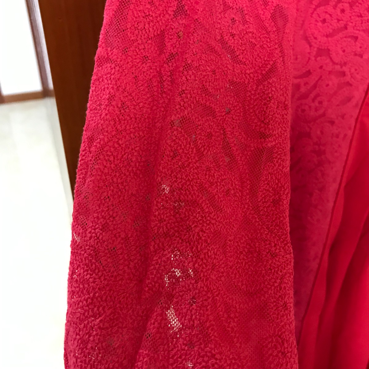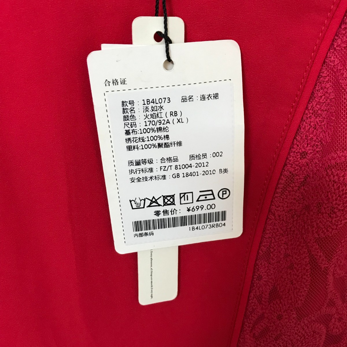 1.序言 红色蕾丝拼接女裙 全新有吊牌 尺寸170/92A 尺码标准 肩宽40胸围 96 袖长 59 衣长86 中午的光线比较亮 具体细节可以看第二张第三张图 95转