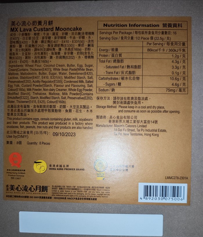 港版美心流心月饼200元转