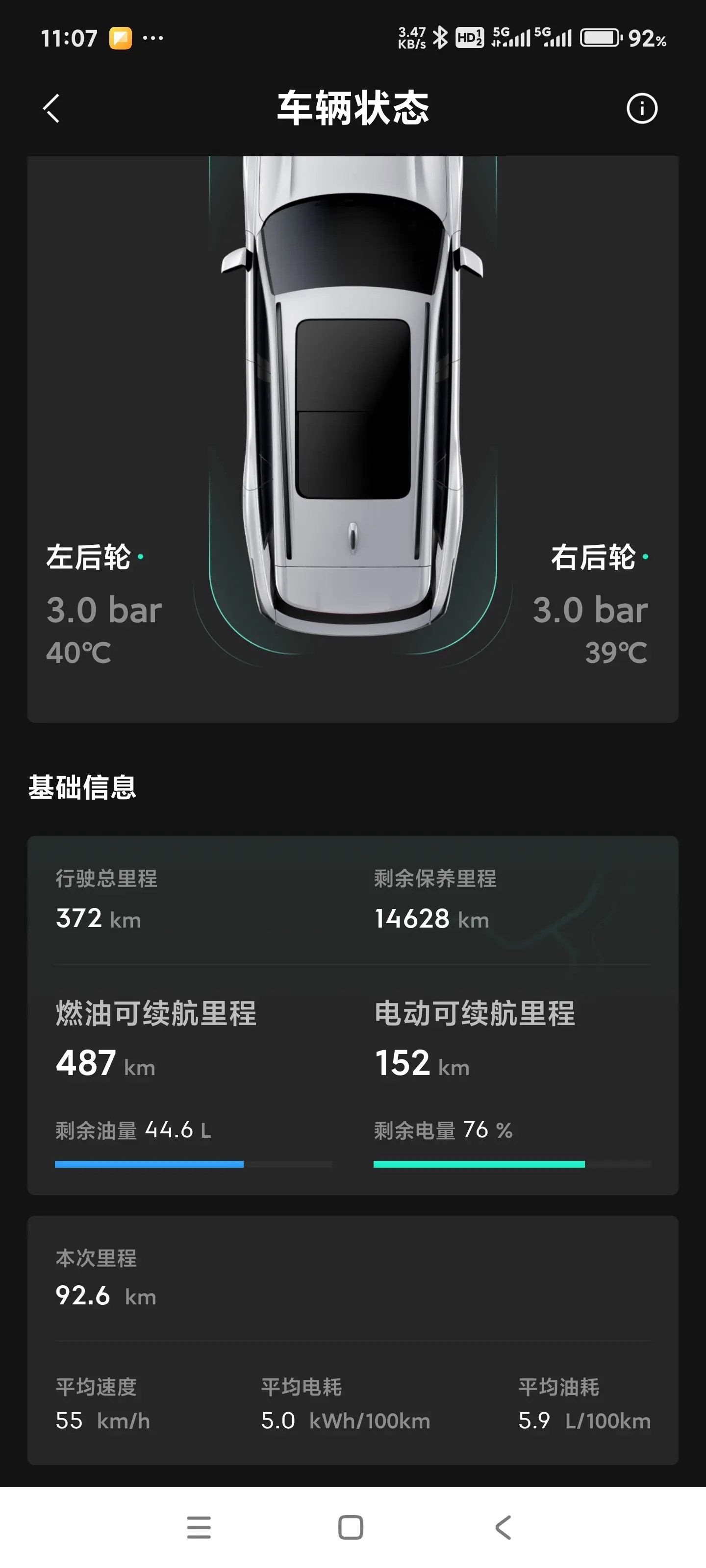 到惠州时的油、电数据。
