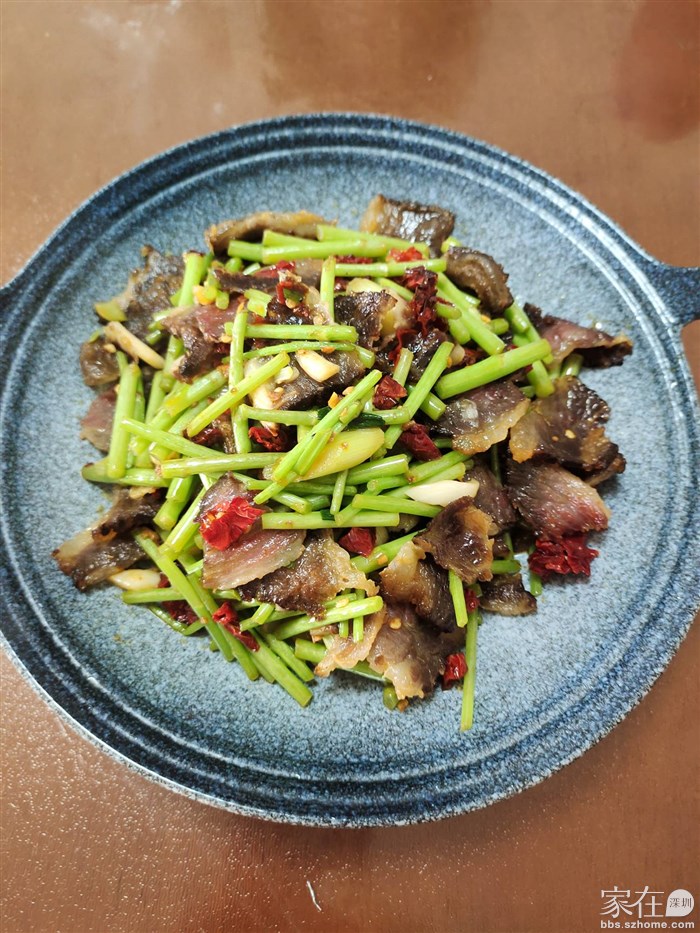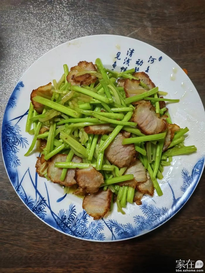 厨娘再曰:三月篱蒿绿色新,湘西腊肉待招亲。来个天仙鸳鸯配,美食一盘吟故人。
