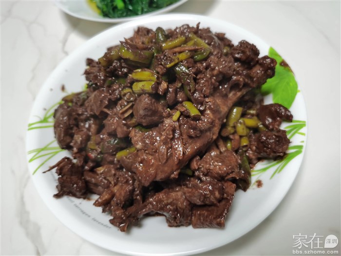 品尝之后,我发现永州血鸭果然名不虚传。鸭肉鲜烂不散,味道浓郁,让人回味无穷。更值得一提的是,这道菜肴并不油腻,反而给人一种清爽的感觉。而里面的泡豆角和青椒更是为这道菜增色不少,它们的香爽口感能够很好地解腻,让人欲罢不能。