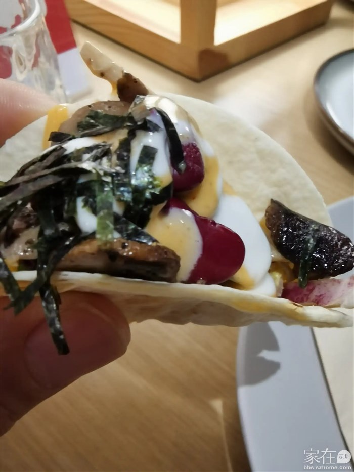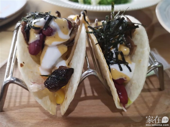 我点了一份菌菇蔬菜 Taco 和黑松露芝士薯条,以及中华沙律和贝贝南瓜藜麦沙拉,这些都是素食中的佳肴