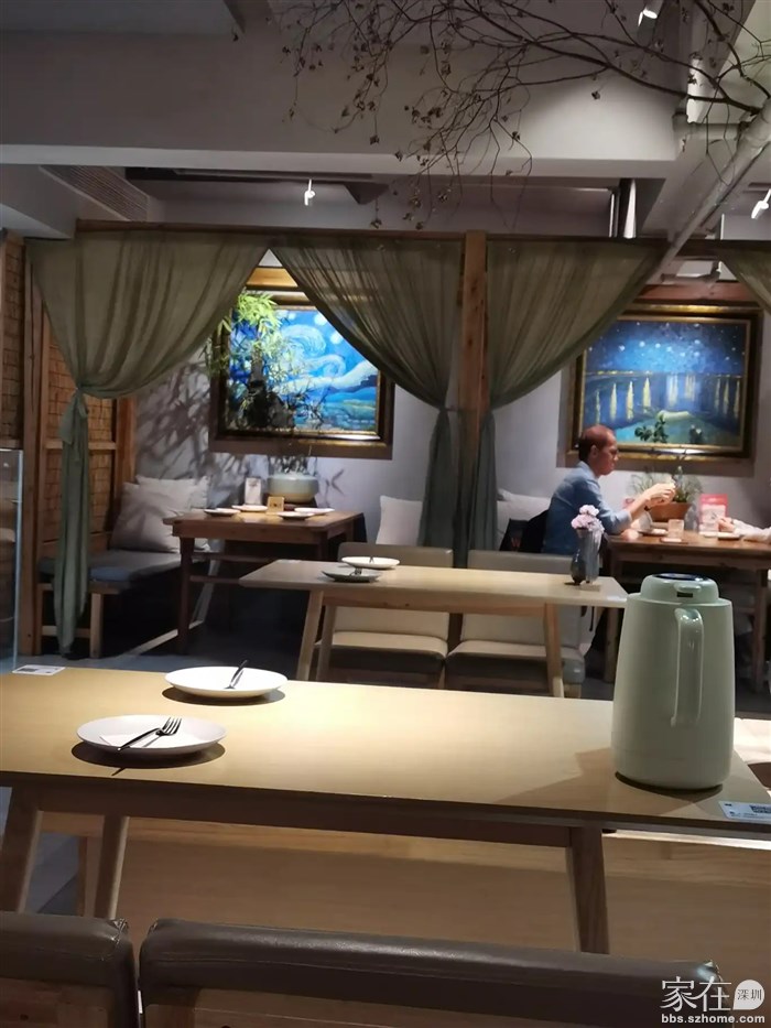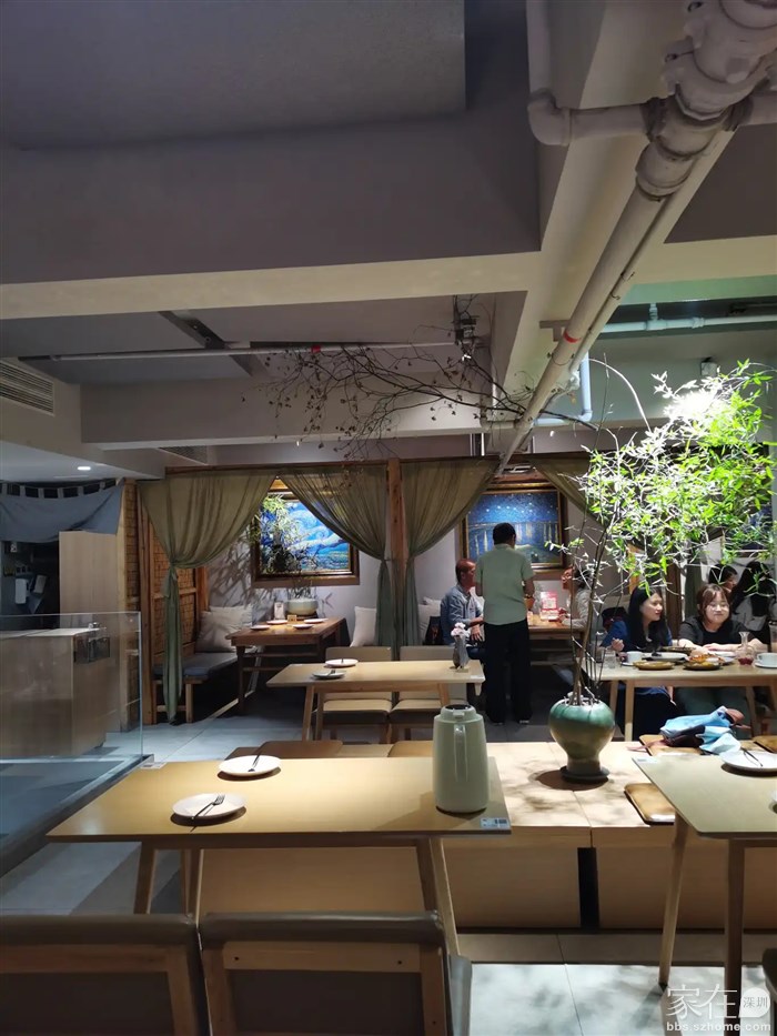 餐厅的环境非常舒适,现代中式的装饰风格,柔和的暖光洒在暖灰色的墙上,绿植点缀其中,让人感到宁静与和谐