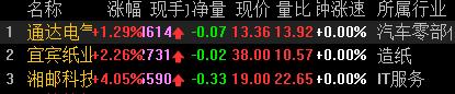 9:28分截图 今天竞价选择出通达电气+1.29%,宜宾纸业+2.26%,位置有点高。湘邮科技+4.05%
