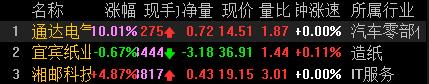 10:02截图 通达电气在9:40分涨停,只封了15分钟就开板了,现在回封量也不大,不过换手不够,如果换手够了,还是能封住的。宜宾纸业还是有点恐高,开盘后一波快速冲高,差点去到涨停就开始回落,有冲高出货味道。这几天遇到很多这样冲到快速回落的,很有杀伤力。湘邮科技三次触及涨停,就是封不住,换手也够了,但没有大单没有诱发量化,有点危险。
