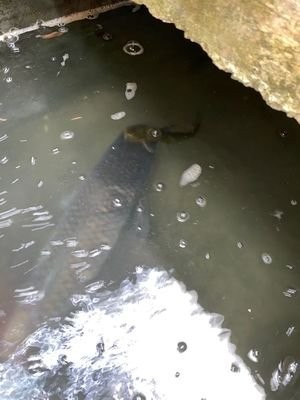 在垄沟过道处,有一些石板,方便人们走过。石板下,小鱼儿,大鱼儿,受了惊吓,争先恐后往前游,藏在石板下。这些鱼儿是随着巨大的抽水机,从水库里抽上来的。