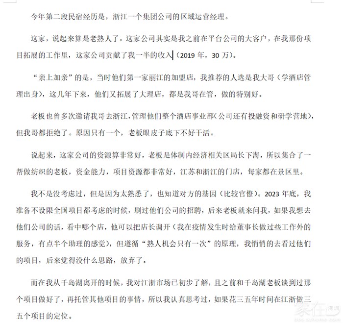 一个从安缦出来到了那个民宿品牌,引入了管家式服务的故事,塑造了一个品牌的故事。
