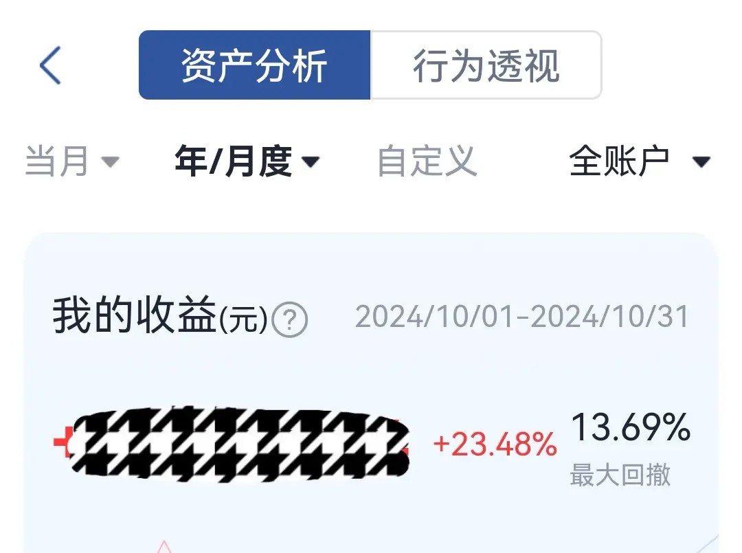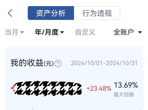 引用幽兰09510217的发言:好优秀的姐姐~引用1296楼楼主的发言:周末待交易系统完成维护后,迫不及待的看看十月份的收益,以为看错了反复看了三遍后乐了,超预期