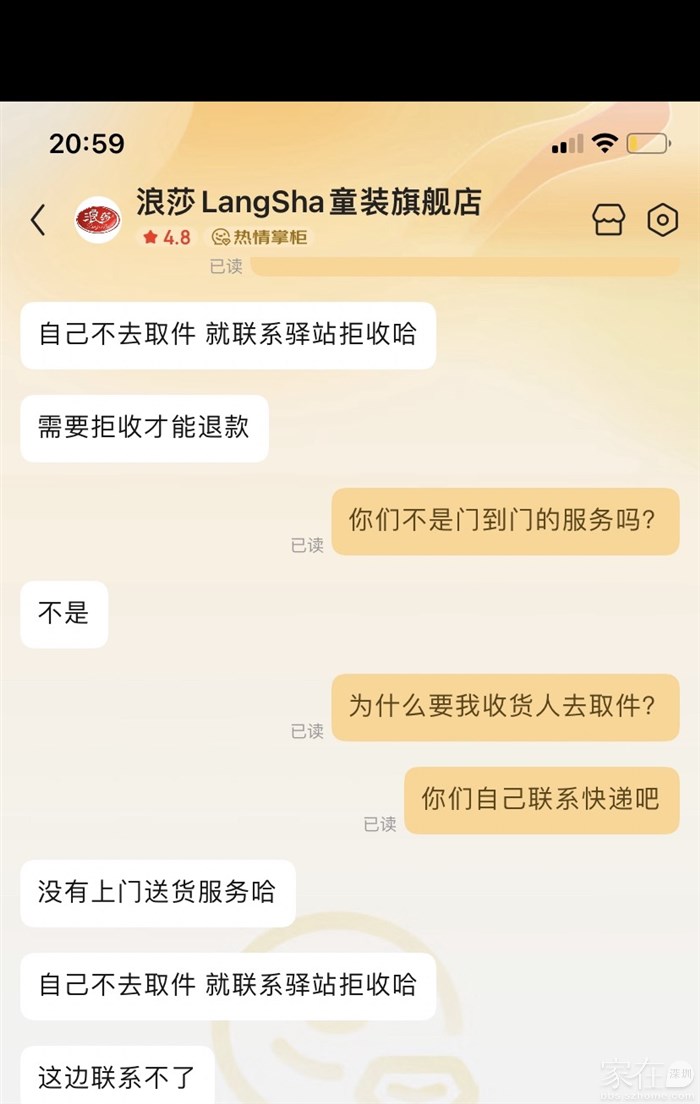 引用4楼楼主的发言:我的快递基本到门的,很少去菜鸟驿站拿,我的认知快递是门到门的服务,况且菜鸟离我的住处有距离,快递不问就直接扔个短信过来菜鸟取件,商家也不管,0容忍了。