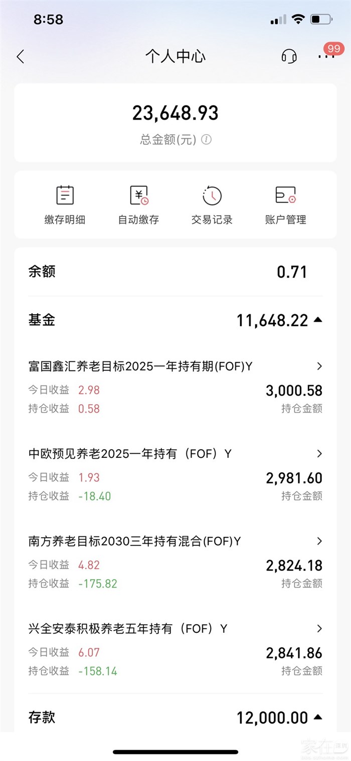引用长安居大不易的发言:去年定存12000,5年期利率3.3%。今年的这个月会存进去,也在犹豫是继续定存还是买基金,因为好像利率已经不到3%了,账户在招行开的。其实拉长时间20~30年看基金应该还是有保障的。毕竟已经是FOF基金了,还有国家背书,短期就没眼看了,基金大多数都亏,FOF能有3-5个点都是好的。如果保险一点,可以先每年定存进账户,先投1-5年期的定存储蓄,再根据大环境和行情转投基金。
