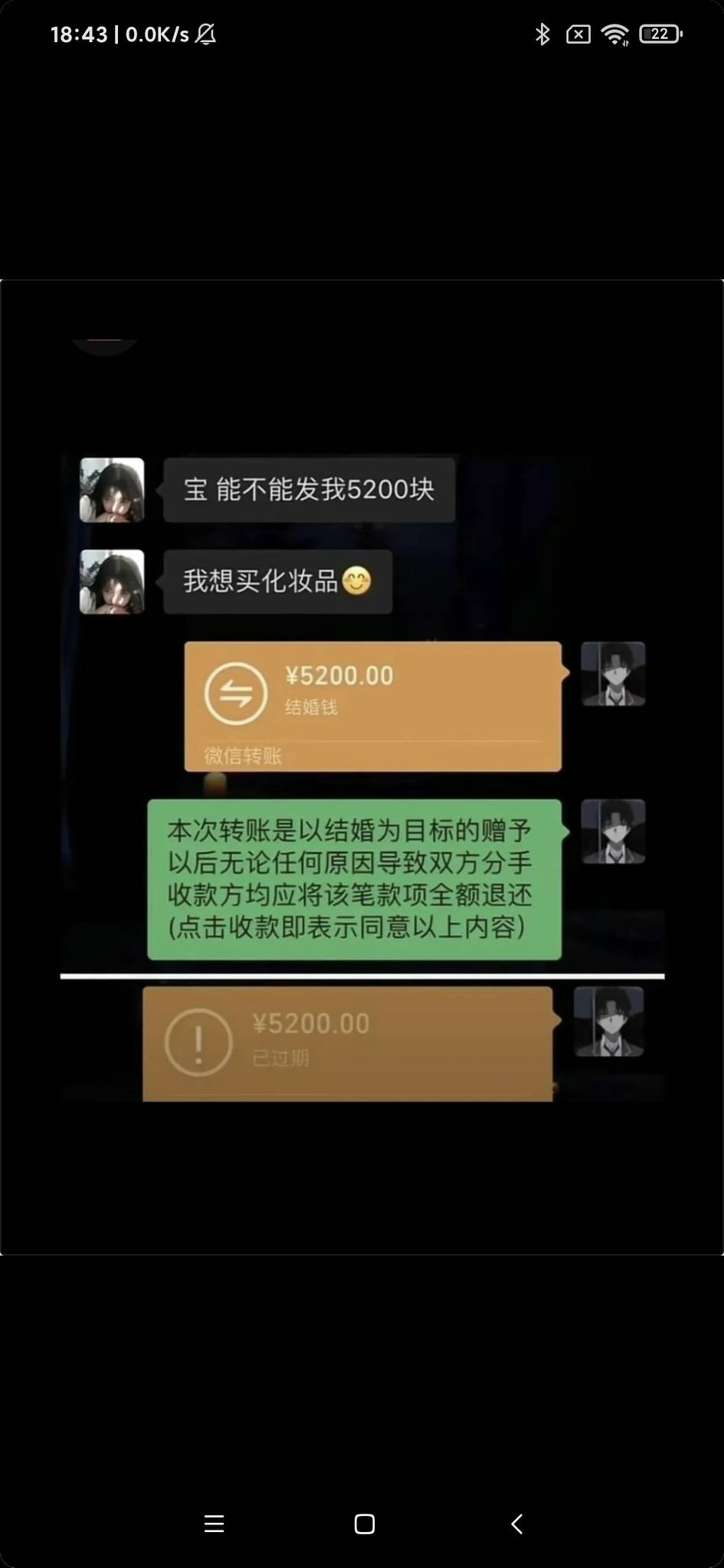 不像一些男的,自降身价,去给女做添狗。本来结婚虽然满足了身体短期需求,长远来看是男的吃亏较多。但是本着社会发展的需要,多数男性主动承担了这种社会责任。你给女的转520,她骂你抠唆小气。但是你知道520元能做什么吗?在我老家梧州每天有一班到贵阳北的高铁,贵阳到丽江机票有时只要220元,然后花20元就可以做机场大巴去特色饭店吃饭,一份气锅鸡48元,菠萝米饭28元。然后住民宿80元。再租用小车80元,两天120元。买瓶红牛6元及纯净水2元加泡面4元等于520元。现在你应该知道怎么做了吧?以后像什么七夕节、520,情人节等,本来就是恋爱男女双方互蹭礼物培养感情的日子,但是作为一名男性,因为没有骨气,就被一些歪风邪气所影响,失去了独立判断的勇气,变成单方付出。最终变成了一股风起,而在这股风潮中,做了众人皆醉,我独醒。