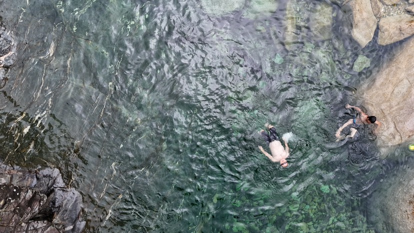 3,河池-天峨县,之前只在抖音刷到过天峨县的视频,没有来过,既然来了河池,就把这个都安不远的一个地方做为玩水的第二站吧,没有抱期望。来拉发现。确实是一个宝藏地。两天下水了两次这条叫红水河的河流。玩完意犹未尽才去查找相关的资料,到底红水河是怎样的一条宝藏河流。当然深度体验只适合一些玩水爱好者,普通的人在岸边喂当地火出圈的蓝刀鱼就是一种不错的休闲体验。普通人下水有一定风险性,因为河道动不动都是10来米的水深,是不太建议不会游泳的人游玩的。而玩水爱好者的玩法更多,浆板是一种,跳水是一种,潜水也是一种。这三种应该都不会让你失望。在漫长的10来公里的河道上,随时停下都是10米能见度以上的玻璃水。水下蓝刀鱼风暴更是能够媲美沙丁鱼风暴的玩法,而它不需要去到国外,长途跋涉和昂贵的机酒费用,只需要一张高铁票和汽车直达。