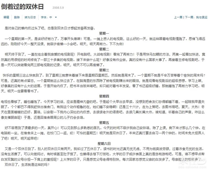 2008年写的:倒着过的双休日