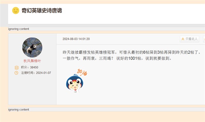 引用1楼秋风舞梧叶的发言:昨天继续霸榜发帖英雄榜冠军,可惜从最初的6帖降到3帖再降到昨天的2帖了。