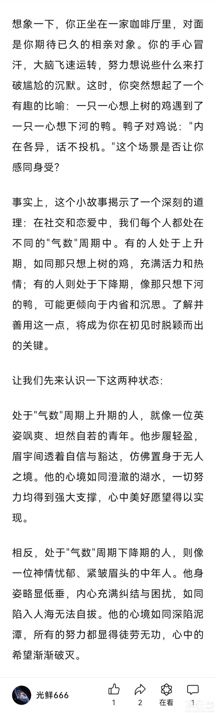 引用4楼meijunzy的发言:不知道为什么这人被吹的那么高。确实造出来的网红,粉丝特别多。有人说他不好就要被围攻。什么才华不才华,就一个为了卖货的打造出来的人设。真正的有才华的人都在搞科研,才华靠的是实力而不是嘴。再说就那长相。。。。唉!引用3楼随遇而安76的发言:期待已久的相亲对象?见的是董宇辉吗
