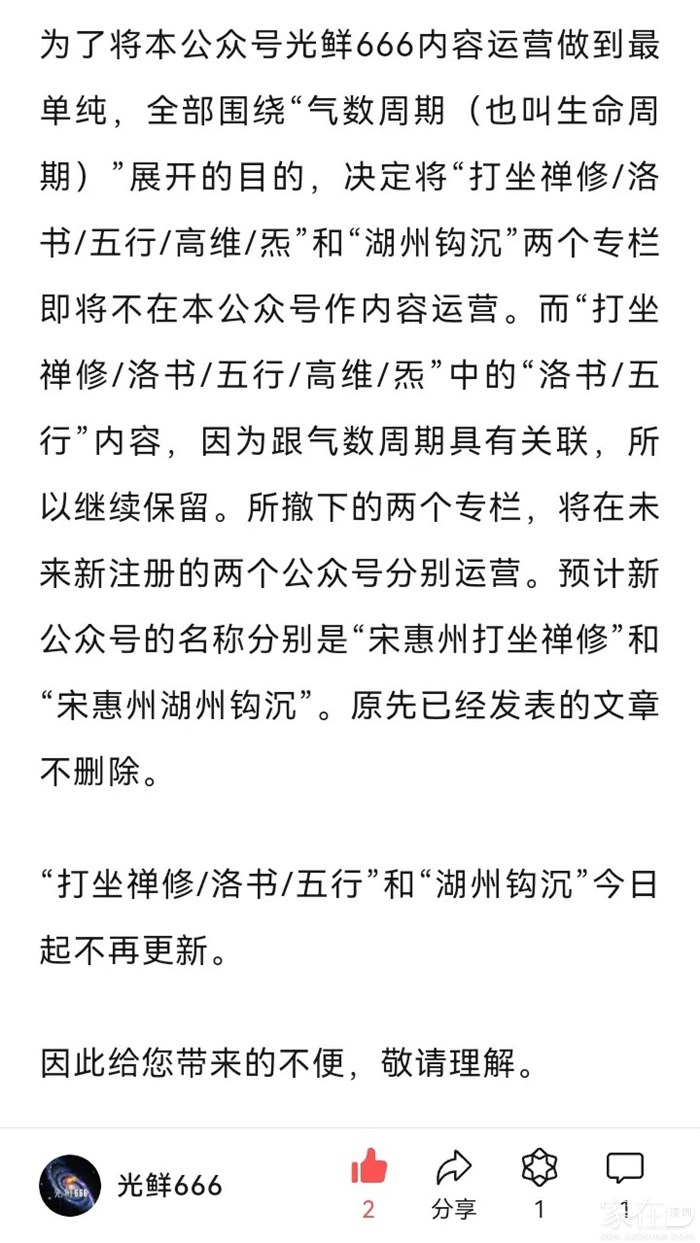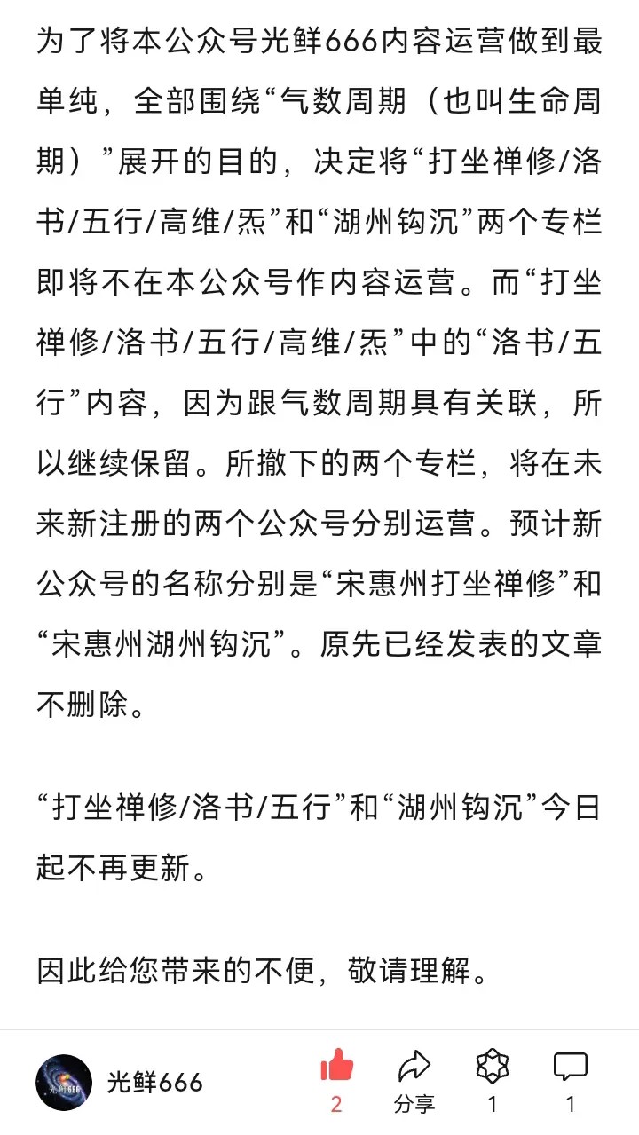 关于“打坐禅修/洛书/五行/高维/炁”和“湖州钩沉”两个专栏即将不在本公众号作内容运营的通知
