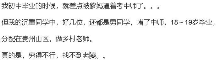 主要是家庭背景,再次是机遇和个人努力。引用8楼城市吊丝的发言:我也是中专毕业,我们还是同一个专业。我比你晚二年上的中专。毕业即为失业。入学时候的包分配工作啥都没有了。中专毕业不是我们的错, 错在毕业后没有继续深入学习。这一点点是不断失败所感悟出来的。没有跟上时代的变革发展。引用楼主的发言:95年的时候,他中考考了695分,我考了735分,他报的中师师范学校,我报的国家部属重点中专学校,学的是机械设计。