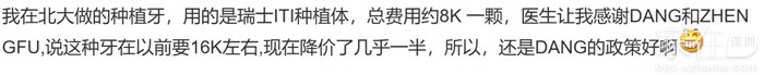 引用sunnyaidj的发言:为啥我在北大医院种植牙一颗,花费了大约1.8w,大家怎么都这么便宜,几千块搞定呢,是种植牙纳入医保,降价了?